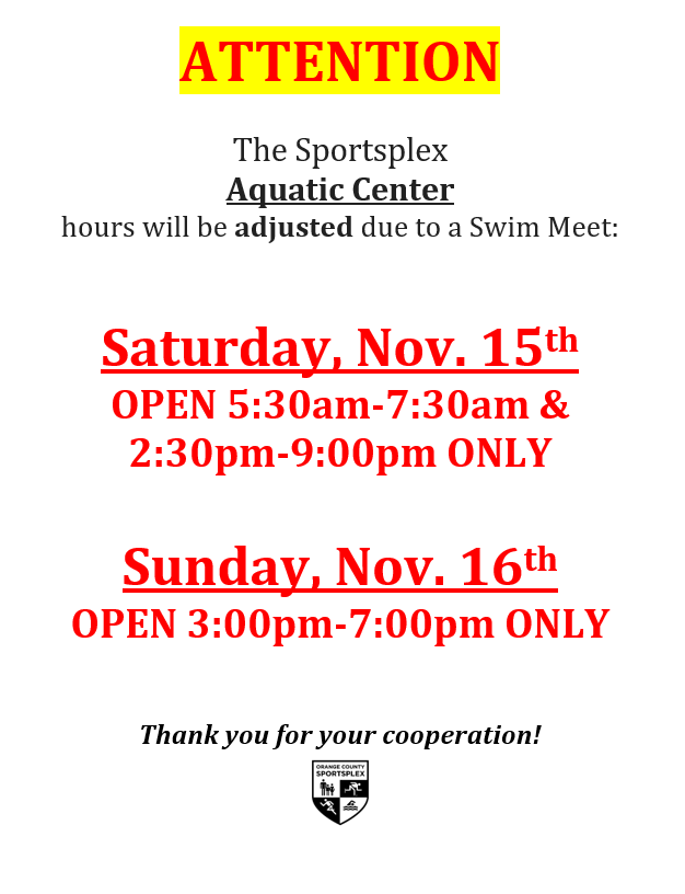 Aquatic Center Calendar