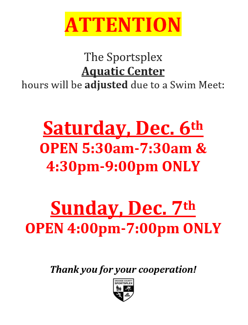 Aquatic Center Calendar