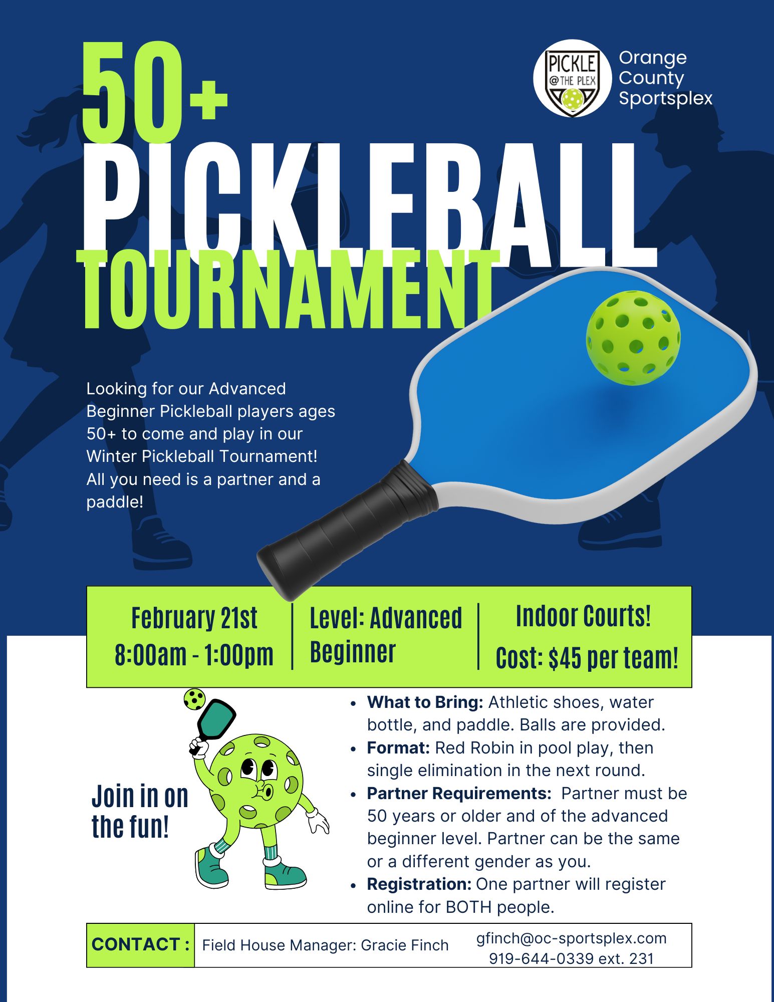 Register for our 50+ Advanced Beginner Pickleball Tournament!
