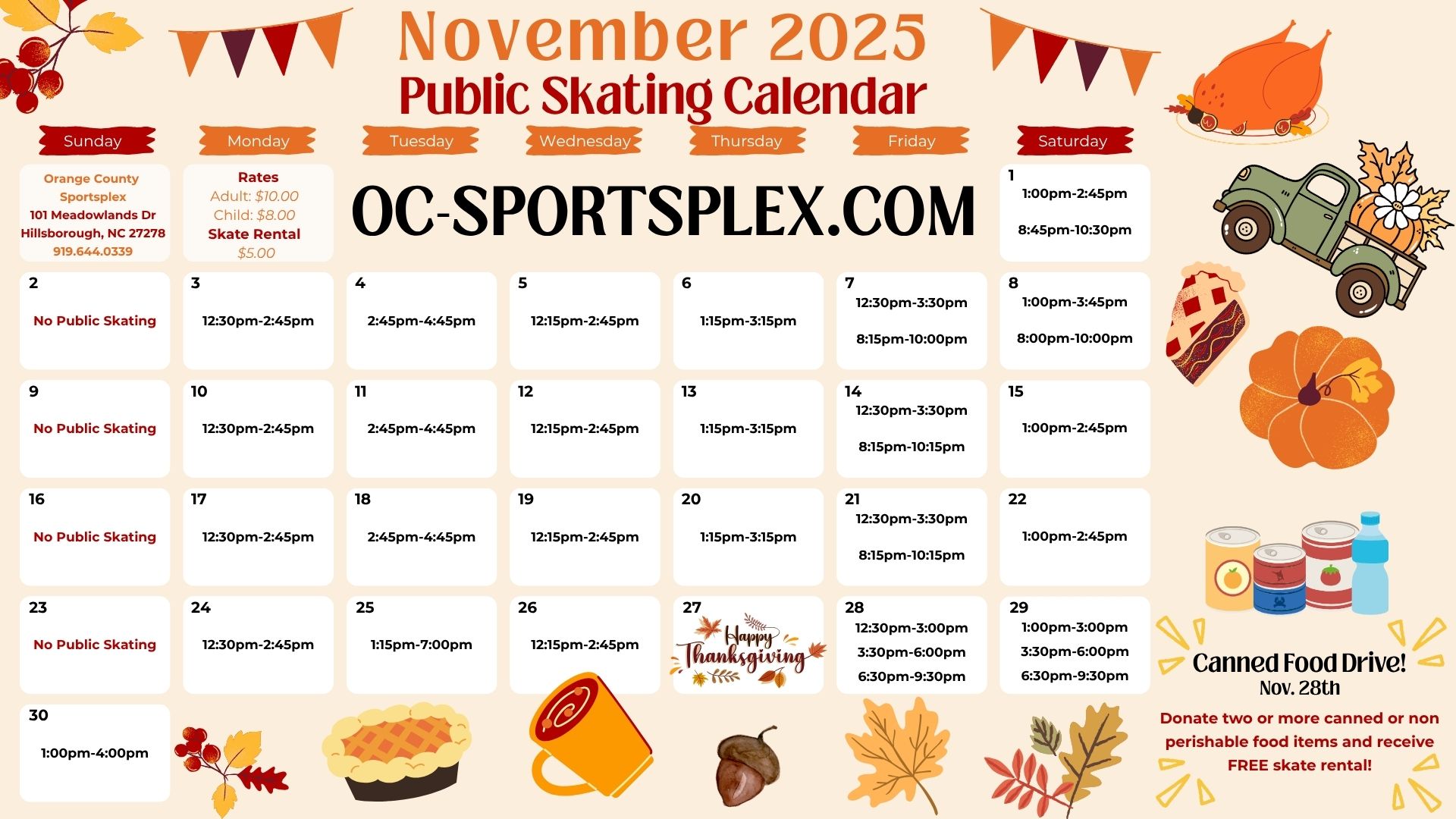 Join us every afternoon, as well as on Friday and Saturday nights (with rare exceptions) for public skating. Look out for themed and discounted sessions on our calendar and take note of the public skate times each day, as there are occasional changes to the standard times. Also watch for bonus sessions around the holidays, especially around Christmas and New Year’s.