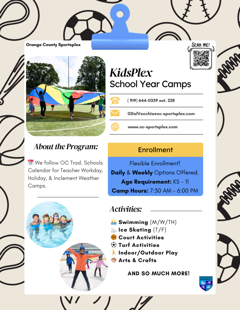 🗓 Camps follow the Orange County Traditional School Calendar.
